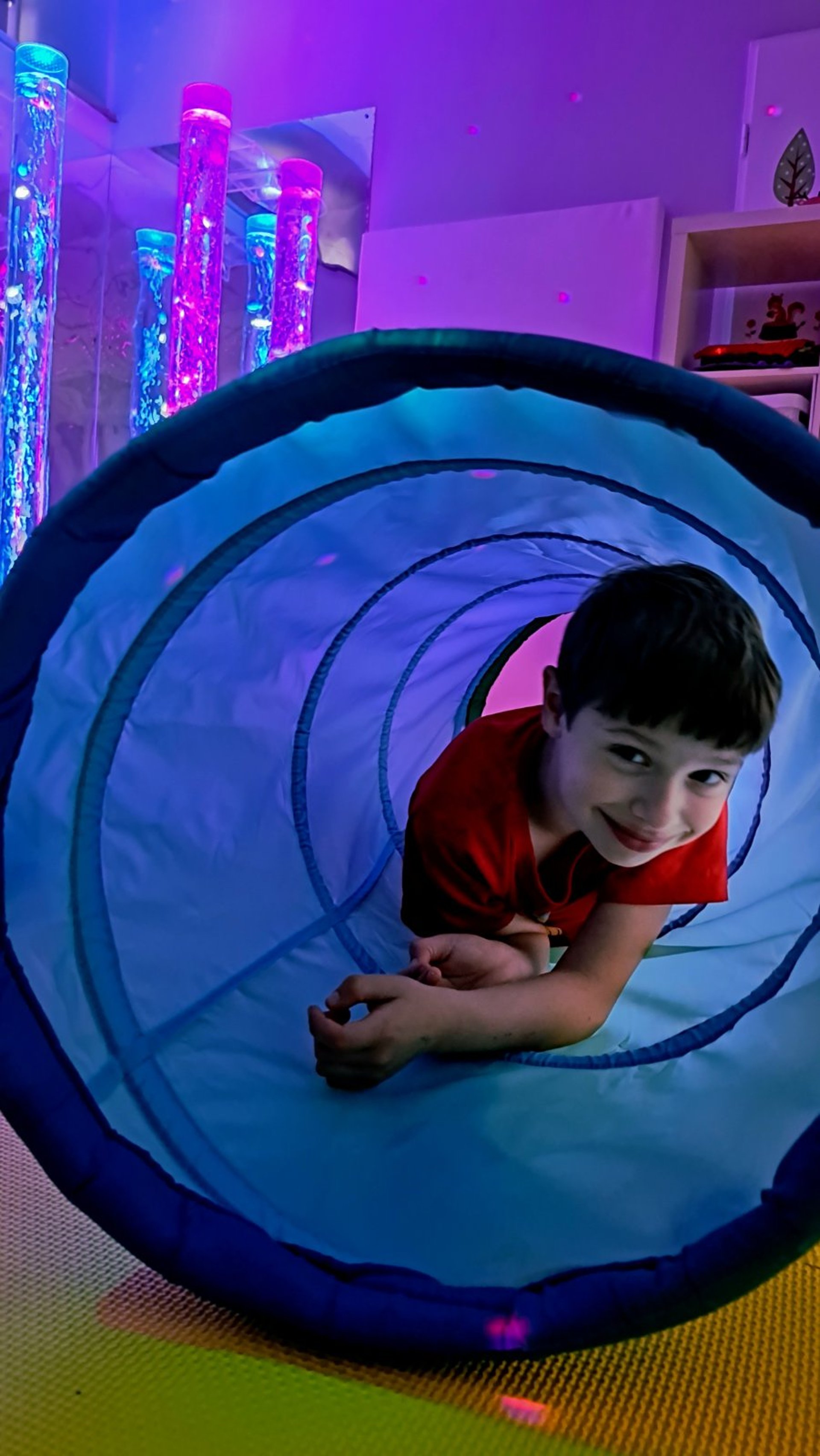 Sensorinė erdvė sukurta taip, kad veiktų kartu su vaiko poreikiais. Minkšti paviršiai, švelniai reaguojančios šviesos, subtilūs garsai ir skirtingos tekstūros leidžia vaikui tyrinėti saugiai ir natūraliai. Vaikas gali judėti, liesti, stebėti arba tiesiog ilsėtis — kiekviena reakcija čia yra teisinga.